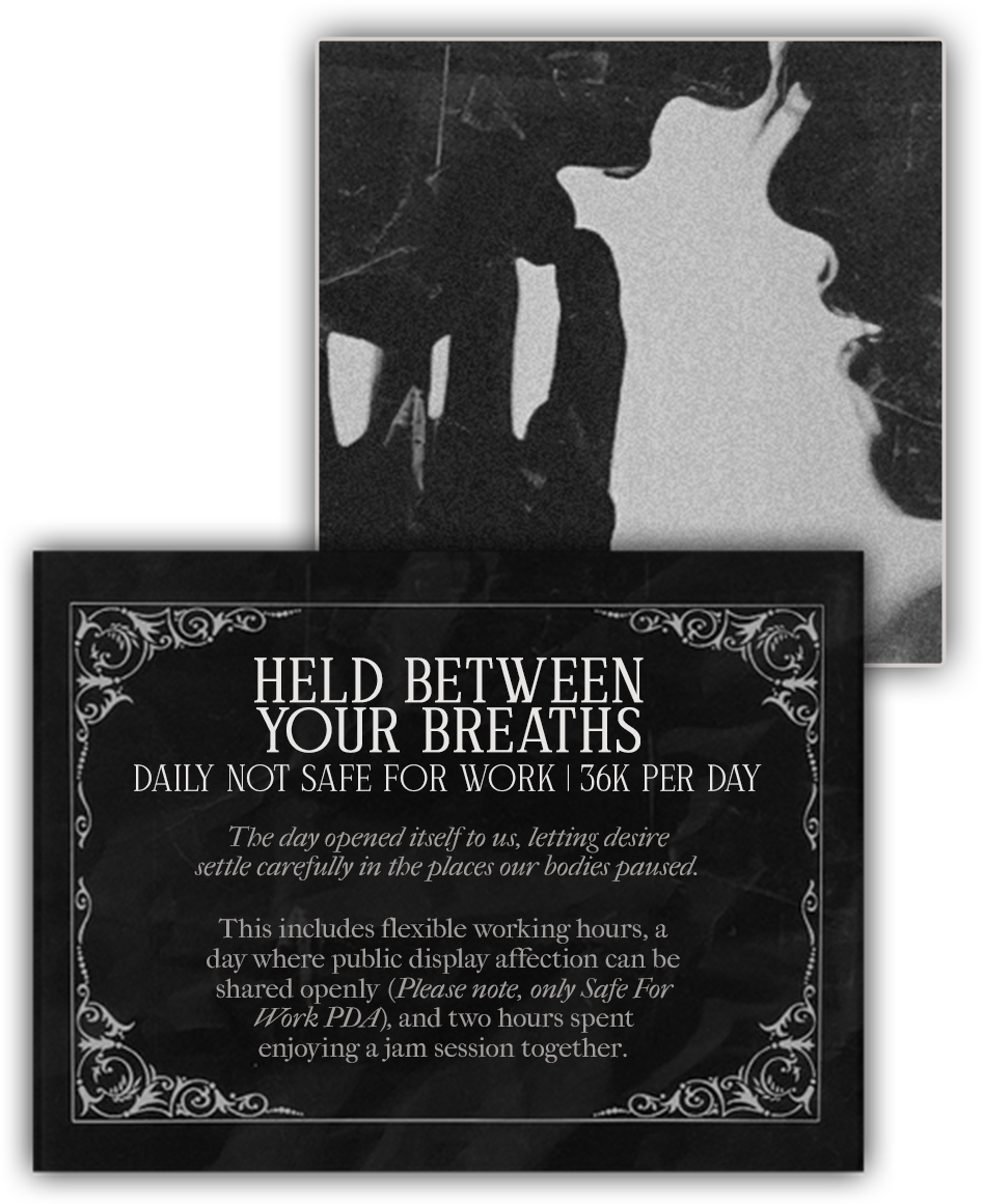I’ve been thinking about you more than I should admit, letting the thought of you slip into every part of my day. It’s strange how something as simple as your presence can feel like gravity, familiar, pulling me back to a place that feels like home even before I reach it.Sometimes I wonder if you know what you do to me. How easily I could lose my mind over the way you’re… here, the way you kiss me, the way every little thing you do settles into my chest like it belongs there. You don’t even have to try, my heart reacts before my thoughts can catch up. It’s almost unfair, the ease with which you undo me.I won’t pretend I have everything figured out. But I do know the way you make me feel isn’t something I can brush off or treat lightly. It’s deeper than I expected, like something that keeps unfolding each time you come closer.And maybe that’s why I keep finding myself wanting the moments with you. The ordinary ones. The ones that look like nothing from the outside but feel like everything when it’s just us.I’ve been counting the days without realizing I’m doing it. And now that it’s close, I can feel the pull in my chest again.Can’t wait to see you at home.